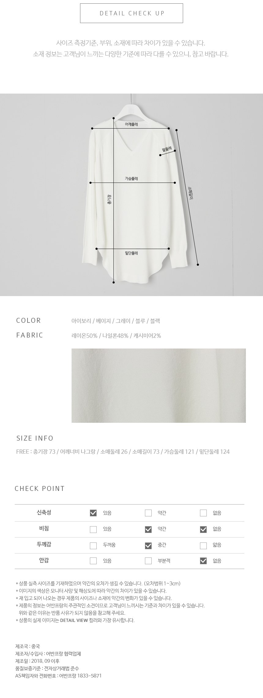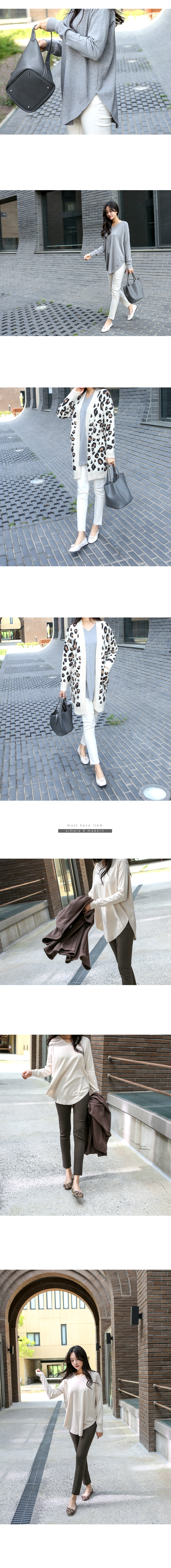 보들보들 가벼운 캐시미어 터치의 롱 니트 레이온, 나일론 혼방 특유의 부드럽고 소프트한 터치에 쫀쫀하게 툭 떨어지는 핏이 기분좋은 니트로 캐시미어 혼방으로 고급스러운 텍스춰까지 더한 강력추천 니트 아이템이랍니다 깊지 않아 단정한 브이넥 라인에 바디라인 따라 편안하게 떨어지는 네추럴핏으로 밑단을 둥글려 힙선을 덮어주지만 산뜻해 보이는 길이감이 좋아요 너무 얇거나 두껍지 않은 딱좋은 두께감으로 단독으로 이너로 활용도 높은 니트랍니다 색상은 아이보리, 베이지, 그레이, 블루, 블랙사이즈는 FREE 44~66반까지 추천해요 ▼ 관련상품 : 포근 레오파드 숄가디건 베이직 슬림 텐션 팬츠 시크해 롱 코튼 가디건