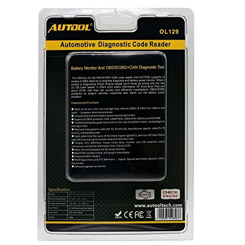 -. Title : AUTOOL OL129 Battery Monitor and OBD/EOBD CAN Diagnostic Tool Support 12V Mini Vans and Light Duty Vehicles OBDII Engine Code Scanners