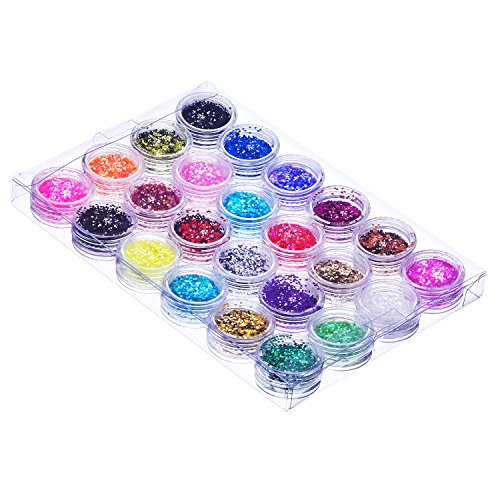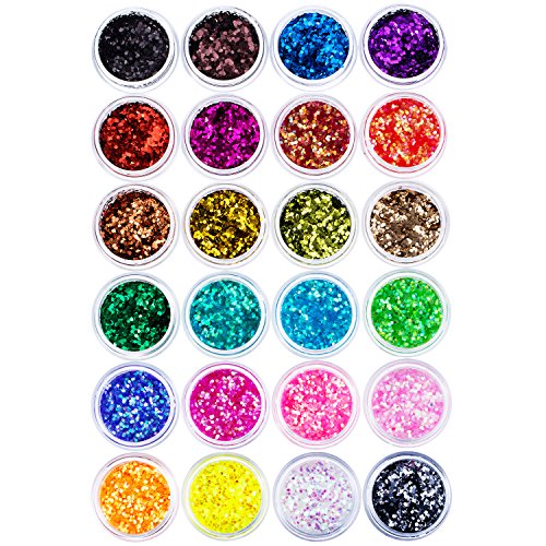 -. Feature : 24 Colors make up glitters kit: 24 small box of glitter powder in 24 different colors, shiny and various colors meet your diverse make-up demands / Nail art tips decoration: 1 mm hexagon small sequins, you can sP.R.Inkle some paillettes on your nails, that will make your nails gorgeous and attractive / Multicolor cosmetic glitter: add shiny sparkle to face, body, and any great night out makeup, can make you look more fashion and charming; Especially fit for party or fashionable look / Every color independently packed in a box: colors packed separately in plastic round clear window boxes which with screw-on lids, easy to see and get what color of glitters you want / Application: good as nail art, face, eye, body and hair cosmetic paillette; Suitable for festival, dancing, art project decoration; Good for personal use in daily life