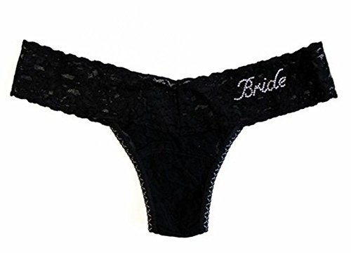 -. Feature : Low rise thong with "Bride" crystal embellishment / Daringly low, 3.5 inch rise and cotton panel / Soft, stretch signature lace / One size fits: 2-12