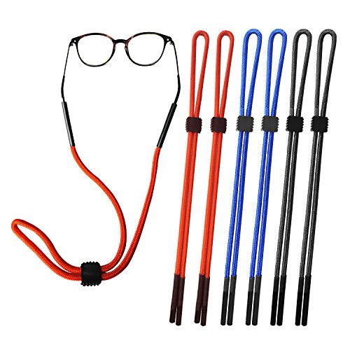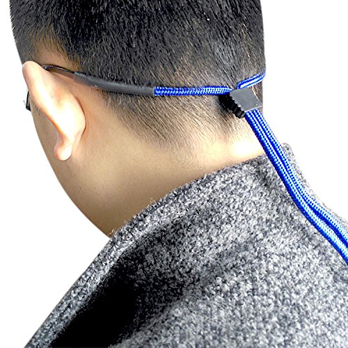 -. Feature : The glass holder strap has comfortable polyester cord, long lasting and fashion. Adjustable toggle on cords ensures that straps will not easily fall off and are comfortable for all head sizes and shapes. / Straps are approximately 23" (60cm) long,the buckle can sliding up and down to adjusting.Then allowing sunglasses to be comfortably hung on your chest, or rest on top of your head. / The lightweight polyester thin-frame sunglass retainers with rubber grips are great for sports, outdoor activities and everyday use. / 6 pack with 4 colors: Black, Blue, White, White.Various colors will easily match with your clothes.This set is really your best choice!