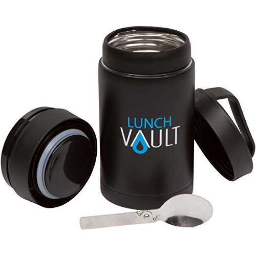 LunchVault Stainless Steel 17 Ounce Soup Thermos & Food Jar - Vacuum Insulated Wide-Mouth Lunch Container with Foldaway Spoon (Black Matte)