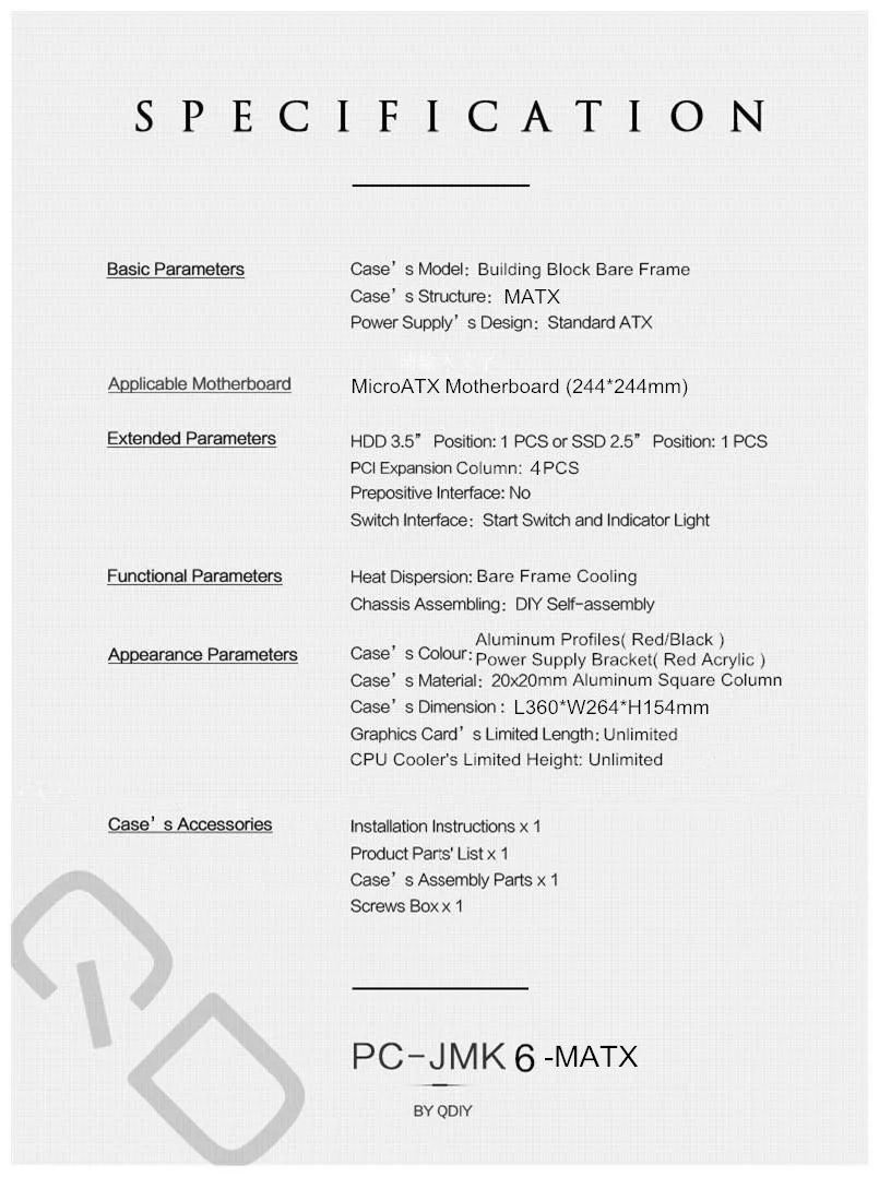 qdiy PC-JMK6 microatxアルミニウム合金水平フルオープンコンピュータケースシャーシ