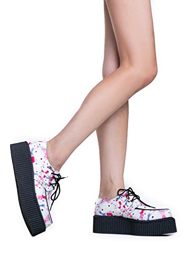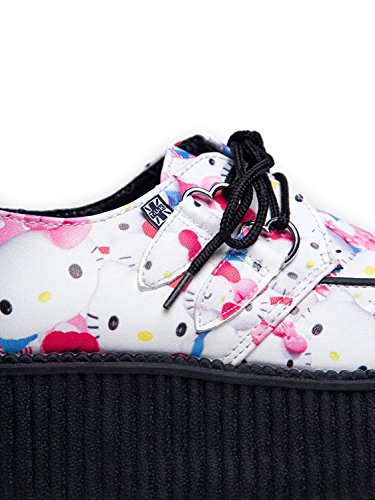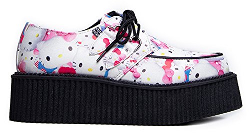 Creepers have never looked better! Decked out with Hello Kitty prints allover this flatform shoo goes from everyday to weekends and beyond! Features laces up the front and a leatherette upper with a ribbed, rubber sole.Feature