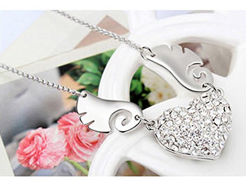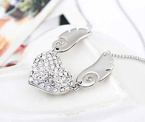 -. Title : Sojewe Silver tone Angel Wing Heart Pendant Necklace White Swarovski Elements Crystal 18" Chain for Women