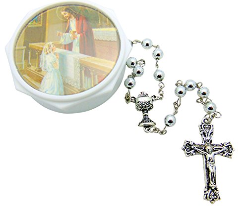 -. Feature : Set Includes One Rosary with Plastic Case / Silver-Tone Metal Alloy Rosary 18 Inches Long / Comes in a plastic case. / Perfect accessory for First Communion / Makes a great gift