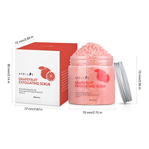 The Aprilis Exfoliating Grapefruit Facial & Body Scrub contains mineral-rich salt crystals from the Dead Sea which gently smooth and exfoliate your body to leave you glowing. Fine particles buff your skin, leaving it fresh, silky and lightly scented with sweet grapefruit. It is also enriched with Vitamin E, a powerful and effective anti-aging antioxidant, along with beneficial oils such as sunflower seed, sweet almond and grape seed oils, which help to further soften and revitalize your skin.