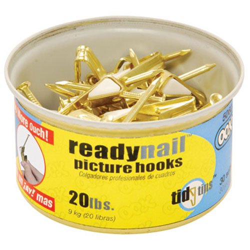 OOK by Hillman 50607 ReadyNail Conventional Brass Picture Hangers Tidy Tin Supports Up to 20 Pounds, 30 Units Set