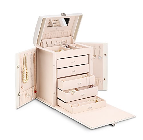 Vlando Deluxe Large Jewelry Box Storage Organizer, Fabulous Wedding Gift for Bride (White)
