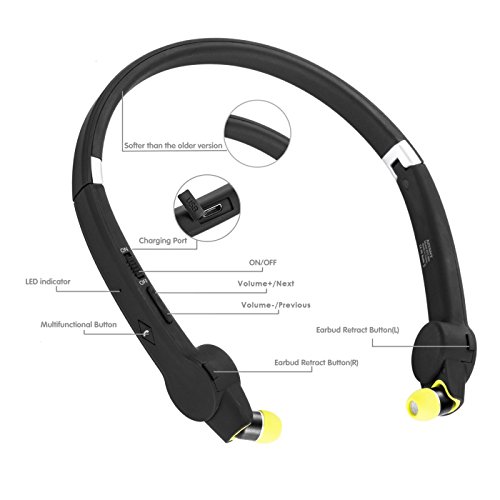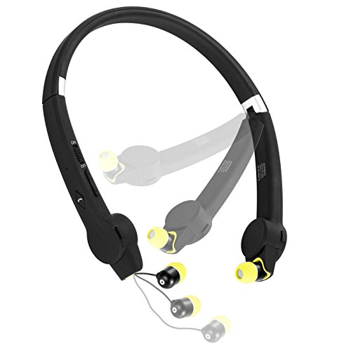 MAXGADGET Foldable Bluetooth Headphone,Wireless Neckband Sports Headphones with Retractable Earbud, Bluetooth 4.1 CVC6.0 Noice Canceling Sweatproof Stereo Earphones for Bluetooth Enabled Devices