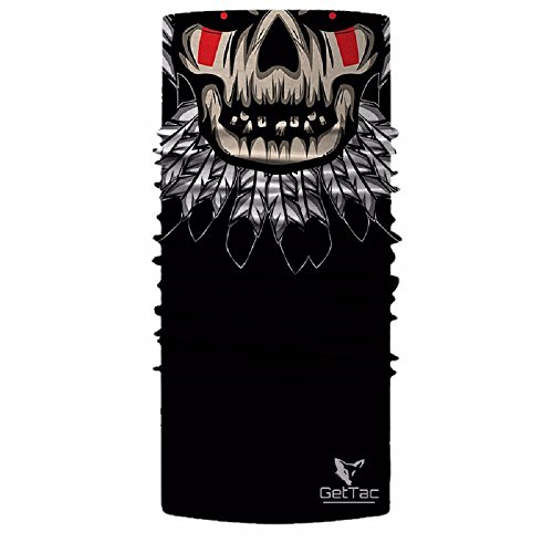 -. Feature : UNIQUE DESIGN - With Get Tac's products, we have awesome designs instead of basic patterns like other brands. / MULTI-USE CAPABILITIES (10+!) - Neckerchief, Headband, Wristband, Mask, Hair-band, Balaclava, Scarf, Saharian, Pirate cap, Beanie, Bandana, etc. / QUALITY MATERIAL - Made of 100% polyester microfiber which boasts great features: light weight, stretchy, quick drying and UV protected. / MULTI-FUNCTIONAL FEATURES - Super breathable, which makes it perfect for all kinds of outdoor activities, daily use or even costumes! / ONE SIZE FITS MOST - The seamless design allows the fabric to form around different shapes of heads, this feature allows our product to be much more universal than if it were seamed.
