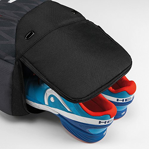 Studio : Head USA, Inc. Publisher : Head USA, Inc. Binding : Sports Product Description The Djokovic backpack measurements are 12.5" long, 19" tall and 9.5" wide. The single large compartment can hold 1-2 racquets. The padded shoulder straps and chest strap provide ultimate comfort and stability. 0
