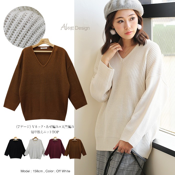 ざっくりとした畦(あぜ)編みの身頃と天竺編みの袖を切り替えたデザインがカワイイ!