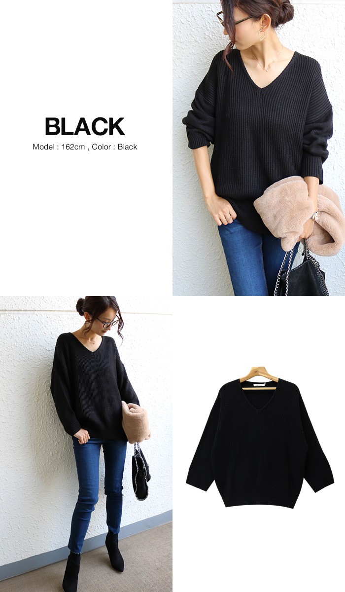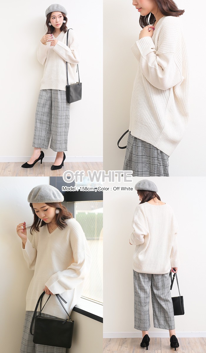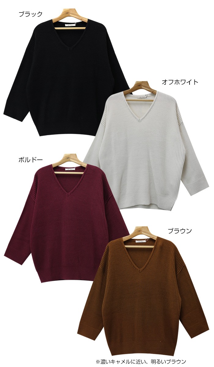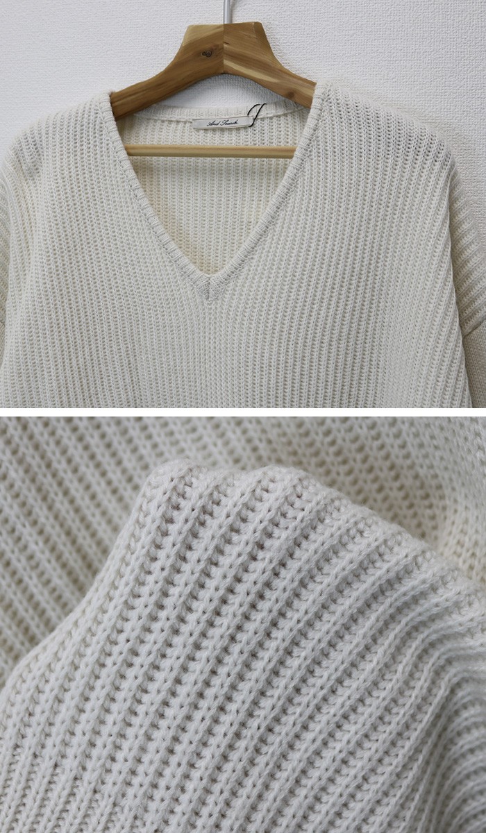 7ゲージ・ニット♪アクセが映える、程よいVネック、全体的にゆったりとしたオーバーサイズでヒップラインをカバーしてくれる長めの丈感がうれしいシルエットです。