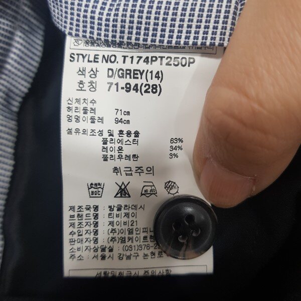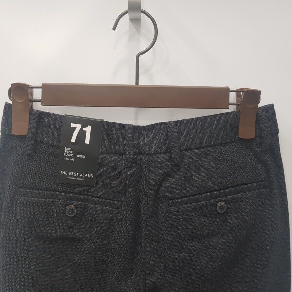 슬림핏이며 그레이 컬러는 잔체크무늬 있습니다.블랙은 올블랙입니다.