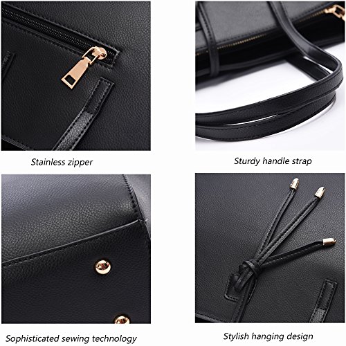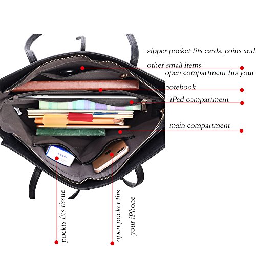 - LARGE CAMPACITY- The INSIDE has 2 MAIN COMPARTMENTS with a CENTRAL ZIPPERED PIECE, 1 ZIPPERE POCKET and the other 2 OPEN POCKETS for iPhone, keys and lipsticks. The Large leather PURSE can hold almost everything you need to take with such as A4 magazine, wallet, umbrella and your daily using 13" LAPTOP