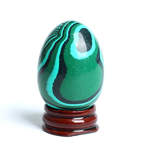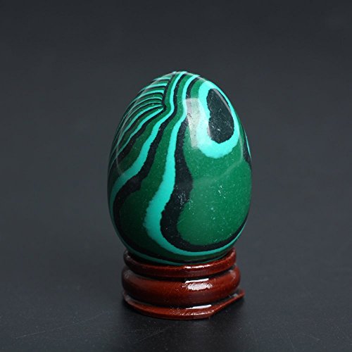 2 Inches Malachite Gemstone Carved Eggs Polished Botryoidal Quartz Reiki Crafts Crystal with Wood Stand