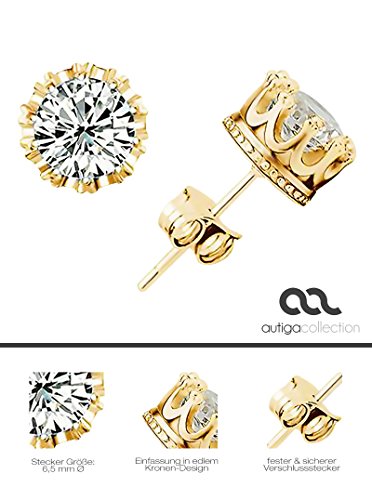 Autiga Ohrstecker Krone Zirkonia Damen Herren Ohrringe Kristall 925 Silber Plattiert Vintage Retro gold