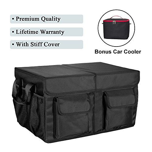 MIU COLOR Foldable Cargo Trunk Organizer Washable Waterproof Storage with Reinforced Handles - Bonus Car Cooler - Black