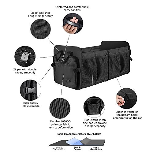 PREMIUM MATERIAL AND DURABLE --- The Trunk Organizer is manufactured with water resistant and abrasion resistant high quality 1680D polyester. This premium material and REINFORCED handles allows you to carry what you want. It is not only durable, but easy to wipe clean. GREAT VALUE!