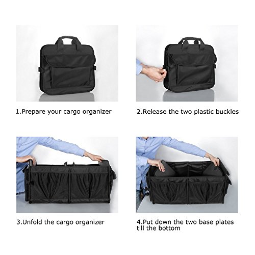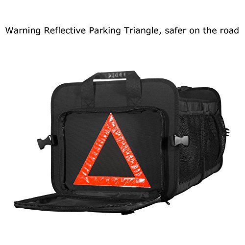 FOLDABLE AND EASY CARRY --- 25*17.5*13 inches when unfolded, together with 8 high-elastic mesh side pockets which allows you to hold more things -groceries, tools, sports equipment, jumper cables and others. Only14*17.5*3.5 inches when folded. Very easy to carry and to store.