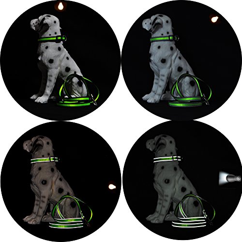 Studio : Universal Promotions Publisher : Universal Promotions Binding : Misc. Product Description When was the last time your dog ended up in your neighbor's garage and your neighbor could not find you? When was the last time you couldn't see your pet during the night walk? Understanding the safety needs of night walking with your dog, Mile High Life introduces this leash, collar set with reflective materials that glows in the dark. While your dog provides safety for your night walk, the reflective leash set will also provide safety for your walking companion. 100% new and high quality nylon provides soft touch as well as strength to keep your dog along your side. New nylon material also comes with beautiful red and blue contemporary colors that match your sneakers and sports wear. Beside colors, small/medium/large options give flexibility to fit the size of your dog. We also offer custom printing of your dog's name, phone number on the leash and collar. Printing information on the back of straps to keep privately, Printed name and number help others find your pet if they are lost. The night reflective and custom print features are unique offers of this product line. 0