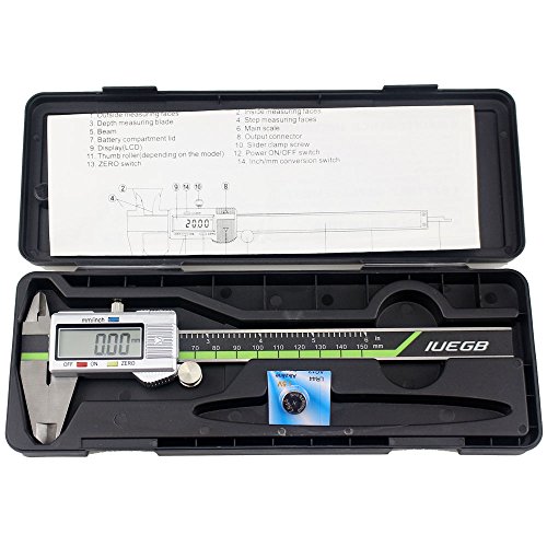 IUEGB Electronic Digital Caliper Inch/Metric Conversion 0-6 Inch/150 mm Stainless Steel Body Green/Black Extra Large LCD Screen Auto Off Featured Measuring Tool