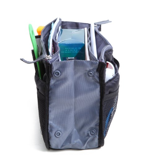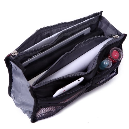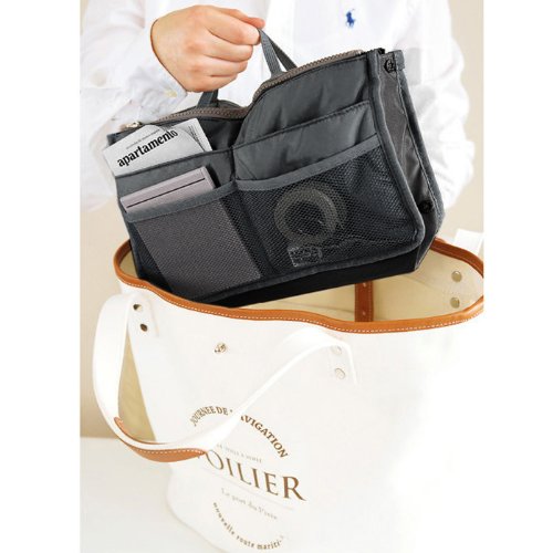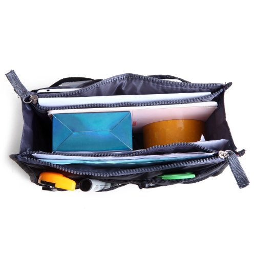 Keep your purse tidy with this lightweight bag organizer. Featuring multiple compartments with zipper closures and numerous pouches, this travel accessory has a place for all of your essential items. Made from durable polyester that expands and contracts to fit your needs, this bag organizer will help you keep your tote in order and easily allows you to move your things from one handbag to another.