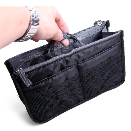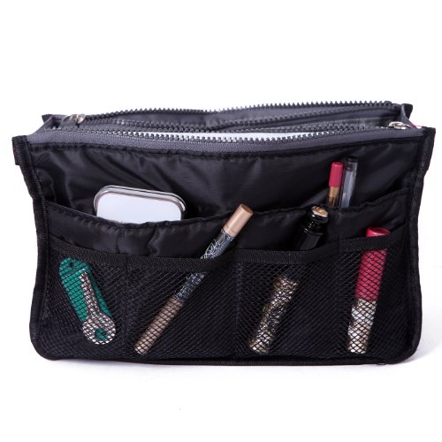 HDE Expandable Handbag Insert Purse Organizer with Handles (Black)