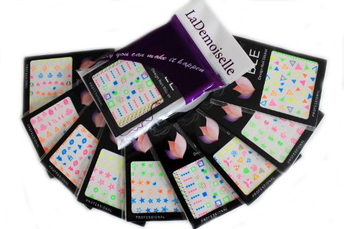 Neon Colors Water Transfer Tattoo Stickers /LD2/- Assorted Designs, pack of 9