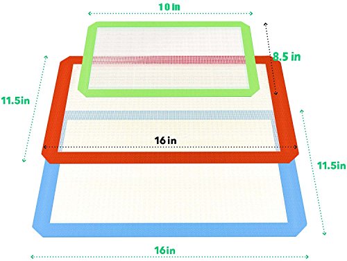 - Package includes slip at silicone baking mat set of 3: Our colorful 3-pack gives you countless options. Use the 2 half-sheet mats to line standard baking trays. Use the 1/4-sheet liner on baking tray in your toaster oven, for small batches and much more.