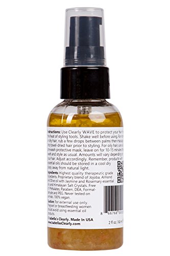 Enjoy Clearly WAVE Clearly WAVE is a proprietary blend of essential oils that act as a shield to protect the hair from damaging heat. The combination of natural oils and Himalayan salt crystals provide texture, strength, and shine to your strands, while retaining your hair's natural moisture. Thermal protection fights frizz as well as protects against split ends and hair breakage. Clearly WAVE can be used as a thermal protector before styling with heating tools, or used to add texture and volume for effortless air-dried waves.