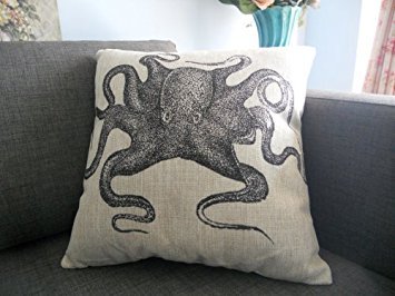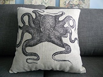 Decorbox Cotton Linen Square Throw Pillow Case Decorative Cushion Cover Pillowcase for Sofa Octopus 18 "X18 "
