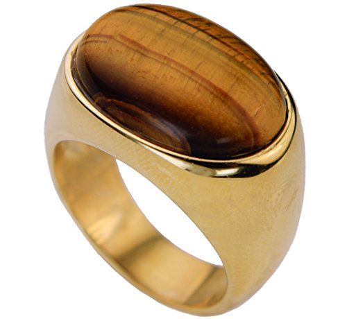 -. Title : Polished Tiger Eye Men's Ring Sleek & Classy 18K Gold overlay