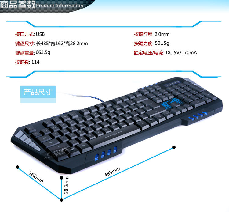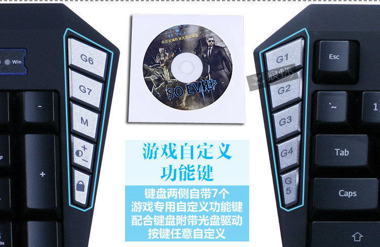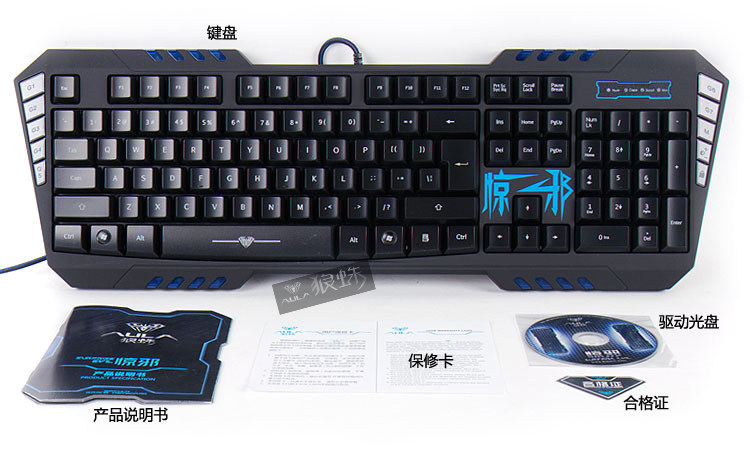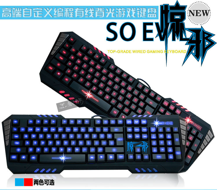 狼蛛惊邪发光背光键盘 自定义编程按键 家用办公 有线USB游戏键盘