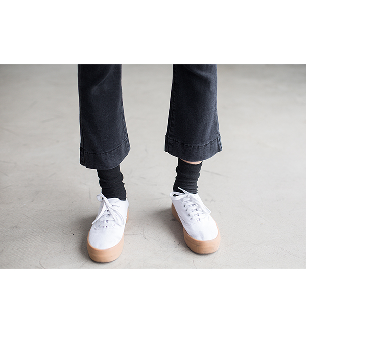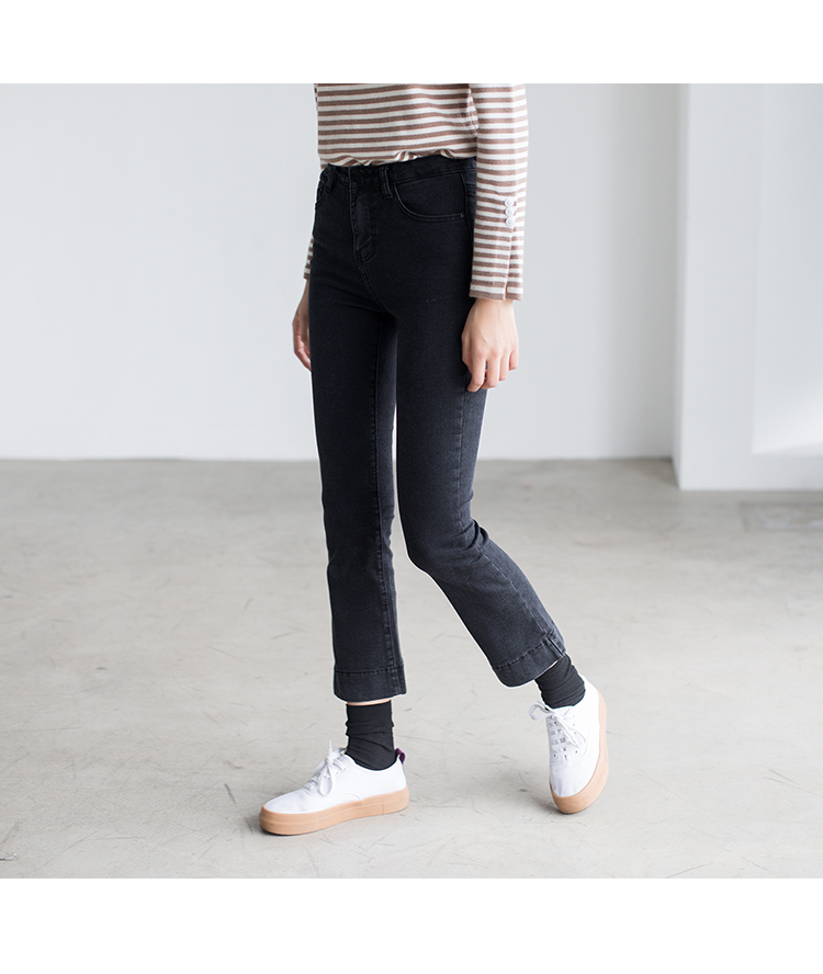 ハイウエストなのでブーツカット風のデザインもプラスされて