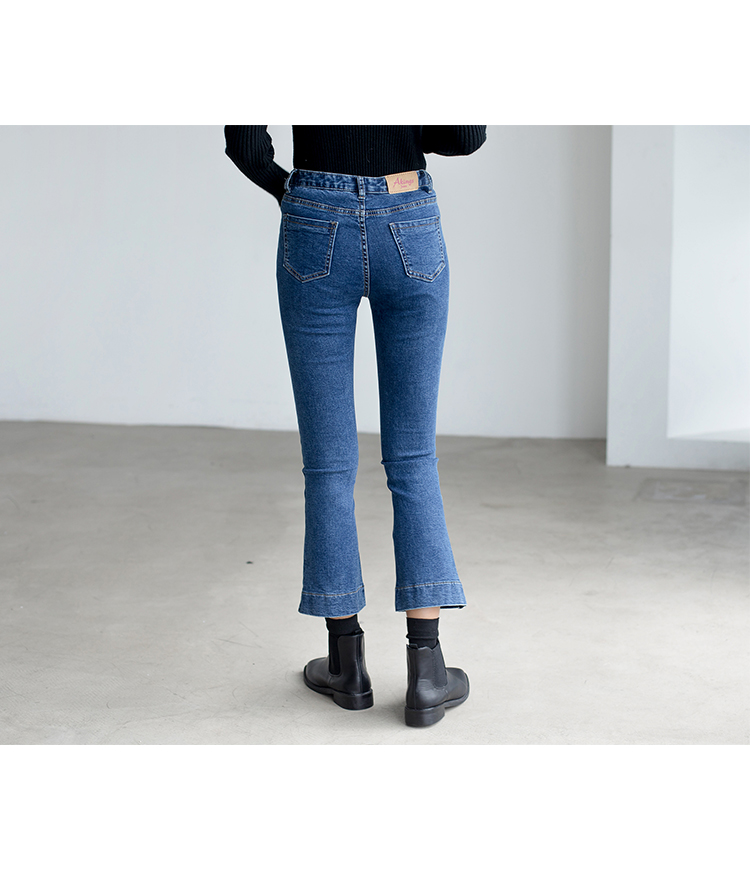 ブーツカット風の裾がスタイリッシュなデニムパンツ