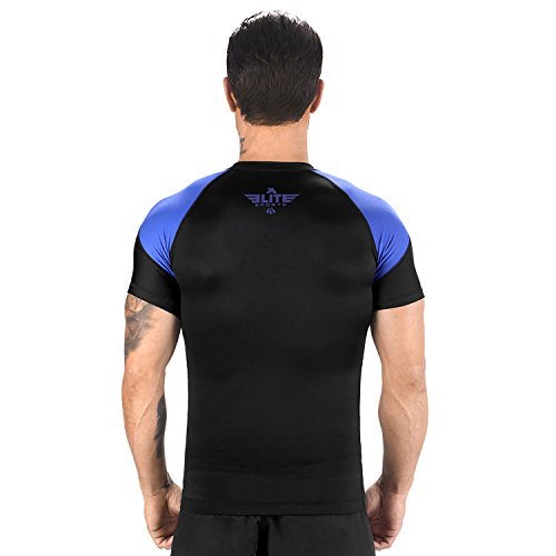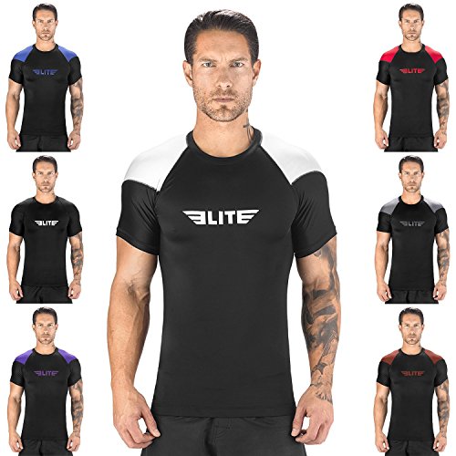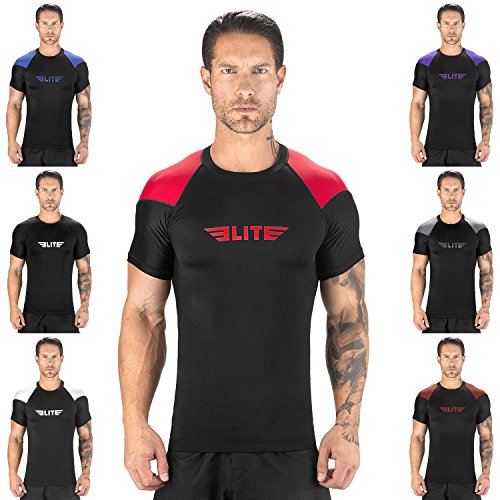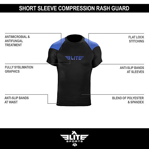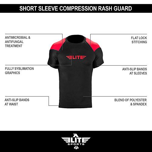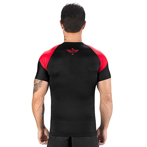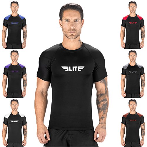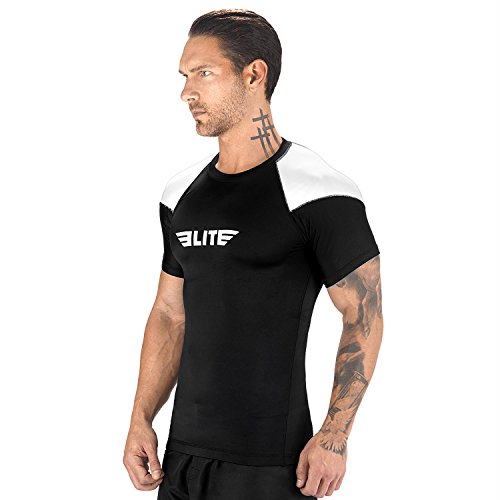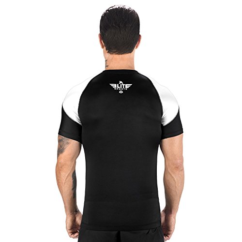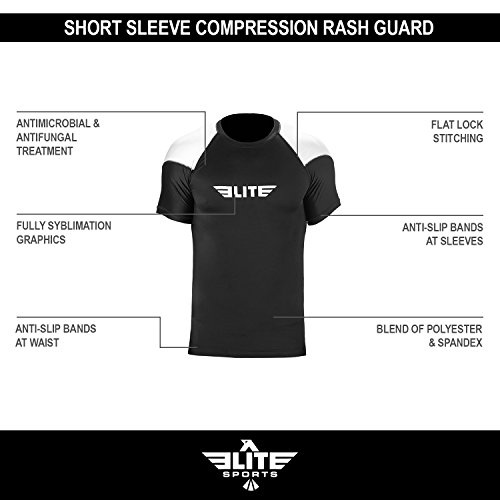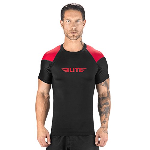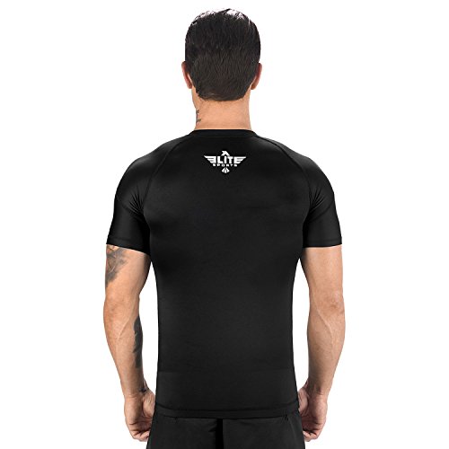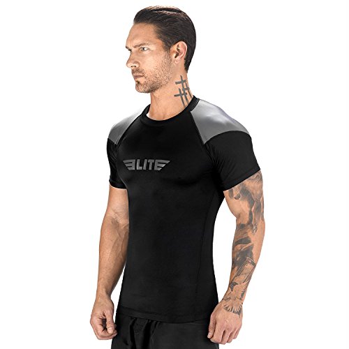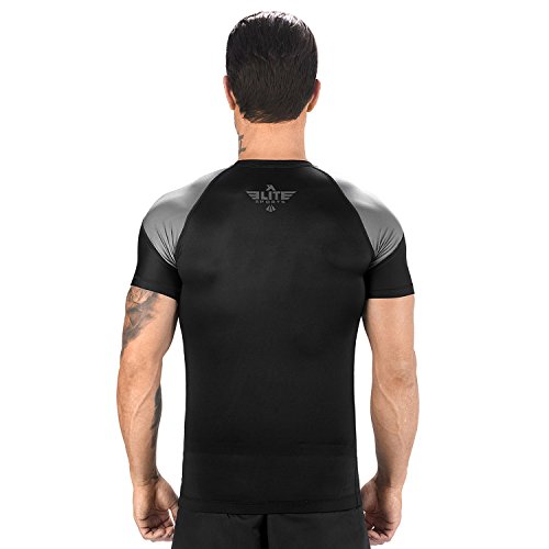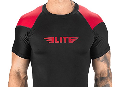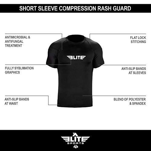 The Elite Sports Standard Short Sleeved Rash Guard Has Been Battle-Tested By The World's Best Athletes This multipurpose short-sleeved rash guard for men excels in a wide range of sports, including MMA, CROSSFIT, BRAZILIAN JIU-JITSU, BOXING, KICKBOXING, and even SURFING. Boost Your Performance Speed Up Your Recovery Time The COMPRESSION MATERIAL allows for better blood flow, improving your performance speeding up your recovery time as well. This is the perfect base layer for your workouts. In addition, HONEYCOMB MATERIAL was added under the arm back for added strength. IBJJF EBI Approved This is an IBJJF EBI tournament approved rash guard. If you're into NO-GI JIU JITSU, this is the perfect rash guard for you. Available sizes range from small to 2XL and can fit both sexes. The BJJ rash guard has a very stylish design that will look great on any athlete. Anti-slip band at the waist sleeves will also prevent the rash guard from riding up on you. Durable Comfortable The rash guard has FLATLOCK STITCHING and is made from a blend of polyester spandex. In addition, the rash guard comes with a antimicrobial antifungal treatment. Furthermore, our FULLY-SUBLIMATED GRAPHICS will not crack, fade, peel, or irritate your skin, giving you comfortable wearing experience. 100% Risk-Free Guarantee We're so confident you're going to love your new SHORT-SLEEVED RASH GUARD, we're offering a 6 month warranty. It covers any defects in materials and workmanship, provided it has not been subjected to obvious abuse, neglect, or misuse. Simply Go To The Top Of The Page And Hit the "ADD TO CART" Button To Order Your Elite Sports Standard Short Sleeve Compression, MMA, BJJ, No-Gi, Crossfit Rash Guard TODAY! 0 |