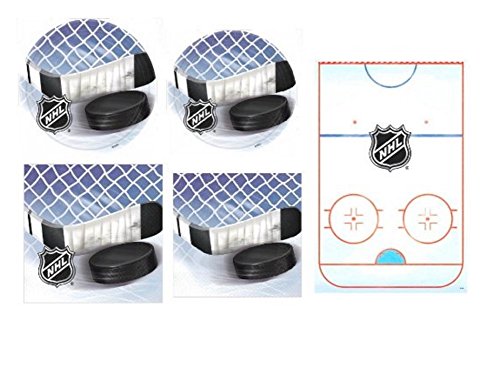 -. Feature : NHL Party Pack Includes / 8- 9" Dinner Plates / 8- 7" Dessert Plates / 16- Luncheon Napkins, 16- Beverage Napkins / 1- Plastic 54" x 102" Tablecloth