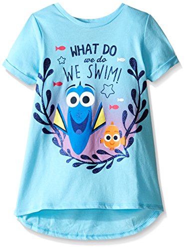 Disney Little Girls Dory and Nemo Hi Low With Rolled Sleeve, Light Aqua, Small/4