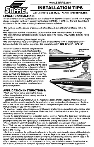 All STIFFIE Alpha Numeric decals are finished with a UV Clear Coating to protect your decals from harmful Ultra Violet rays. STIFFIE uses 100% LEAD-FREE ink and marine grade vinyl. All STIFFIE decal products are environmentally safe and friendly.