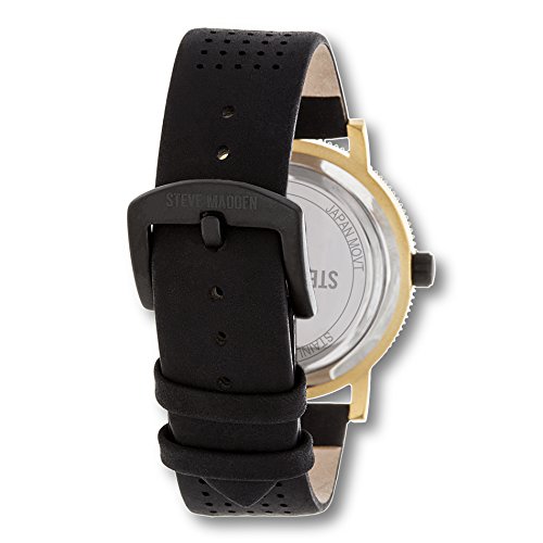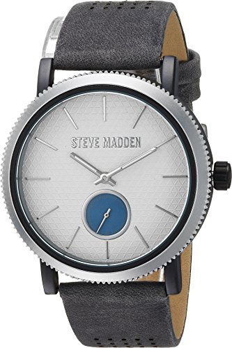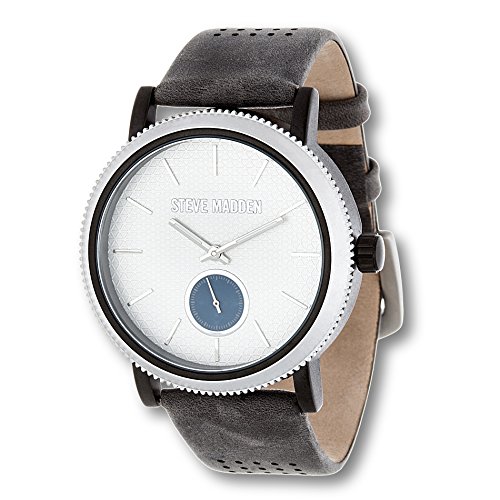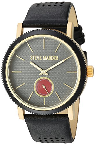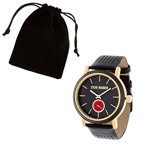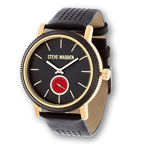 Steve Madden, a brand known for its quality and style, brings these attributes to its watches. This watch features a metallic case and bezel with a stainless steel back, high contrasting markers and dial for readability, and a durable high-quality leather band. The Steve Madden logo is embellished onto the dial and buckle of the watch. Design: Logo on the Dial People: Male Band material: Leather 0 |