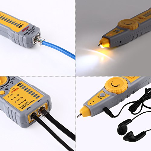 ▲ MULTIFUNCTION WIRE TRACING - Fast to locate the breakpoint without wire's cover damage, find the required line among numerous ones, and also can track the IN -WALL cables, perfect for tracking RJ11, RJ45, cables or other metal wire (via adapter)