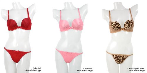 -. Title : グラマラス美乳ブラ&レーシーショーツセット レッド ピンク レオパルドブラウン 3色組C65(M)