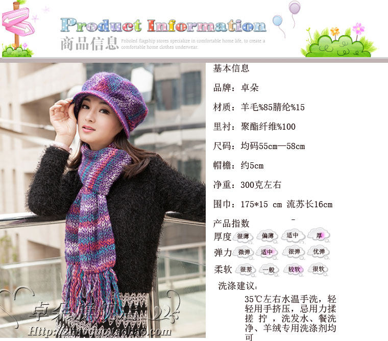 卓朵羊毛线帽子围巾两件套装韩版女士帽子女款秋冬季帽子冬天可爱