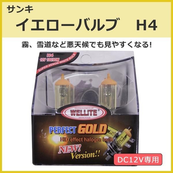 霧、雨、雪など悪天候に最適なイエローバルブです。 製造国:韓国 素材・材質:耐熱ガラス 仕様:DC12V専用バルブ形状:H4定格電力:100/90W ※サプライヤー直送品 ご注文後7~8営業日後の出荷となります【商品名】サンキ イエローバルブ H4