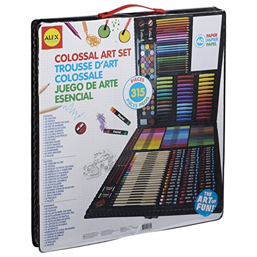 ALEX Toys Artist Studio Colossal Art Set lets your child make a mountain of masterpieces with this multitude of magnificent materials! Draw with colorful crayons and bright markers, sketch works of art, paint watercolor pictures and more with this 315-piece art set. The set includes 40 crayons, 20 pastels, 40 sheets of heavy weight paper, 48 fine tip markers, 36 watercolor cakes, 36 jumbo markers, 24 colored pencils, 24 watercolor pencils, 15 color your own stickers, kneaded eraser, 4 white erasers, 3 drawing pencils, 4 sharpeners, 18 paint brushes and 2 pallets. Recommended for children 3 years of age and older.Feature
