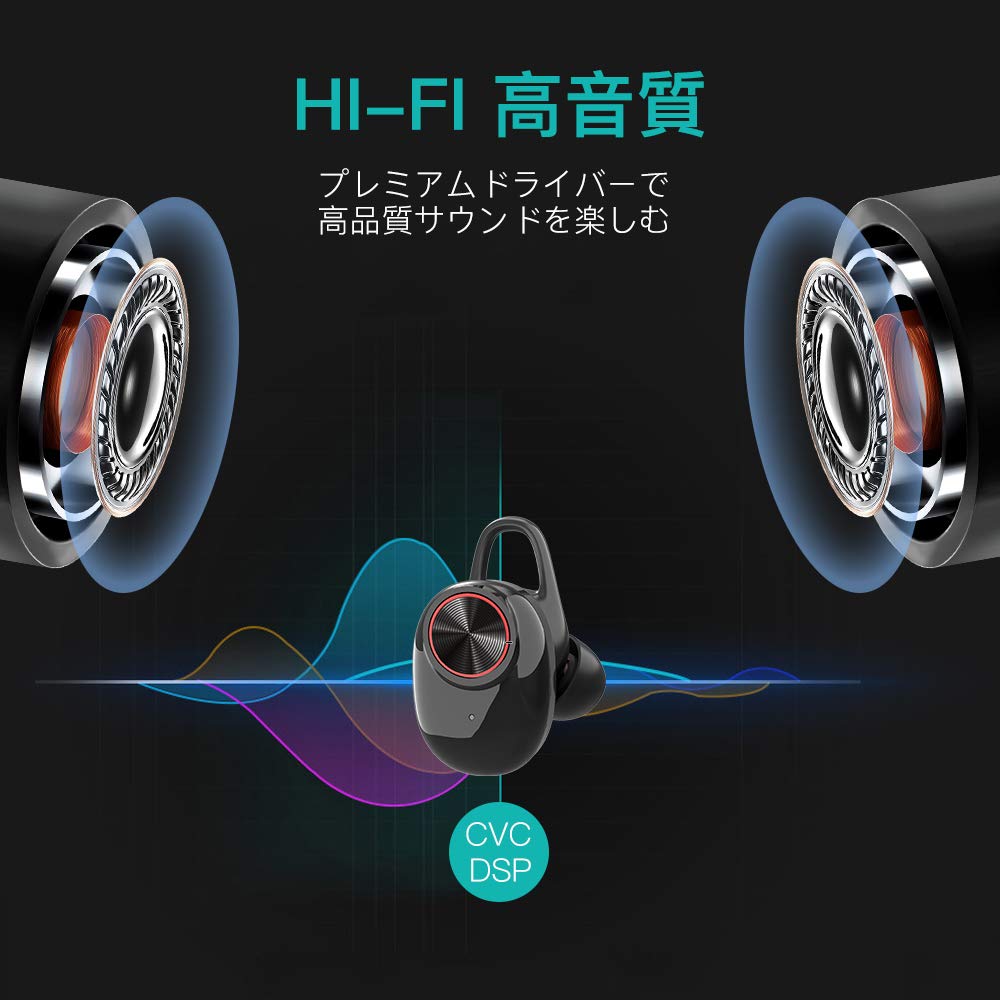 【Bluetooth4.2搭載&500mAh充電ケース】Bluetooth 4.2+EDRが搭載されたワイヤレス イヤホンで、接続性は良くて、「音飛び」や「音切れ」を大幅に改善することができます。対応機種 :Bluetooth搭載の各種スマホ/タブレット/PC等に対応。500mAhのバッテリーケースを搭載しているため、イヤホンを約5~6回フル充電できます。モバイルバッテリーとしてスマホに充電も実現し、お出かけや旅行中の電池切れ心配も少なくなります。