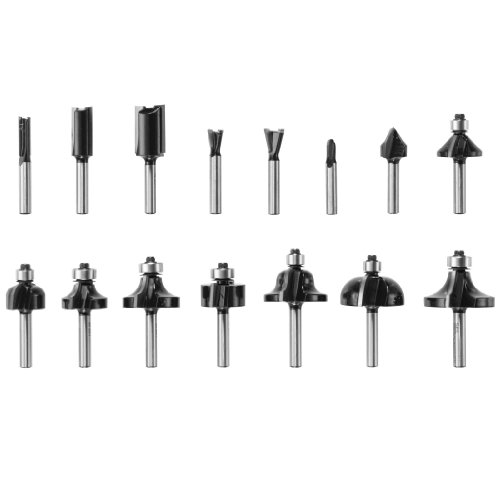 - Feature : 15-piece carbide router bit set with a variety of popular cutting profiles / Fully heat-treated shanks and bodies for durability / Precision ground solid carbide cutting edges / Smooth running bearings / Includes 15 router bits