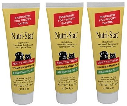 -. Binding : Misc. -. EAN : 0638339158194 -. Feature : Pack of 3 / Use Nutri-Cal for stressed or debilitated animals; those recovering from illness; surgery or whelping; aging animals or just plain picky eaters / Nutri-Cal has an irresistible taste; just place the recommended amount of gel on your finger; on the animals paw or mix with food and watch them eat / Nutri-Cal is packed with vitamins; mineral and other essential ingredients -. Label : Tomlyn Pet Products -. Manufacturer : Tomlyn Pet Products -. PackageQuantity : 1 -. ProductGroup : Pet Products -. ProductTypeName : PET_SUPPLIES -. Publisher : Tomlyn Pet Products -. Studio : Tomlyn Pet Products -. Title : Tomlyn Nutri-Stat 4.25oz (Pack of 3) -. UPC : 638339158194